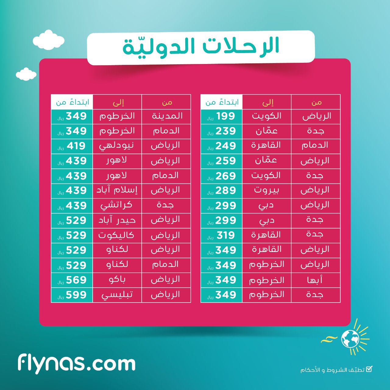 طيران الامارات طيران الاتحاد الخطوط السعودية فلاي دبي فلاي ناس والمزيد من خطوط الطيران. استخدم كود الخصم fly10. رحلات رخيصة إلى دبي. Back to homepage.
